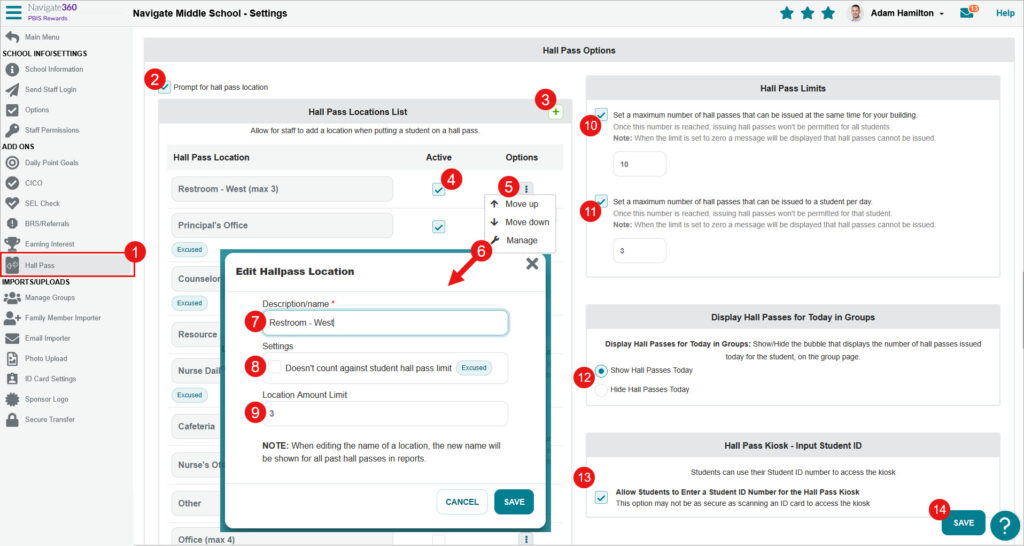 - [Hall Pass Plus Only] Edit the name of a location.